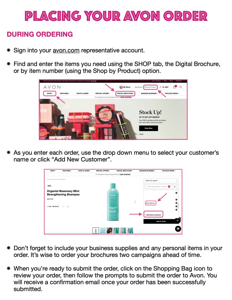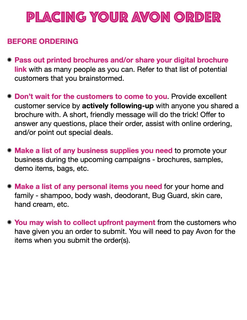 I’ve organized some helpful tips you can use before, during, and after placing your avon.com order…