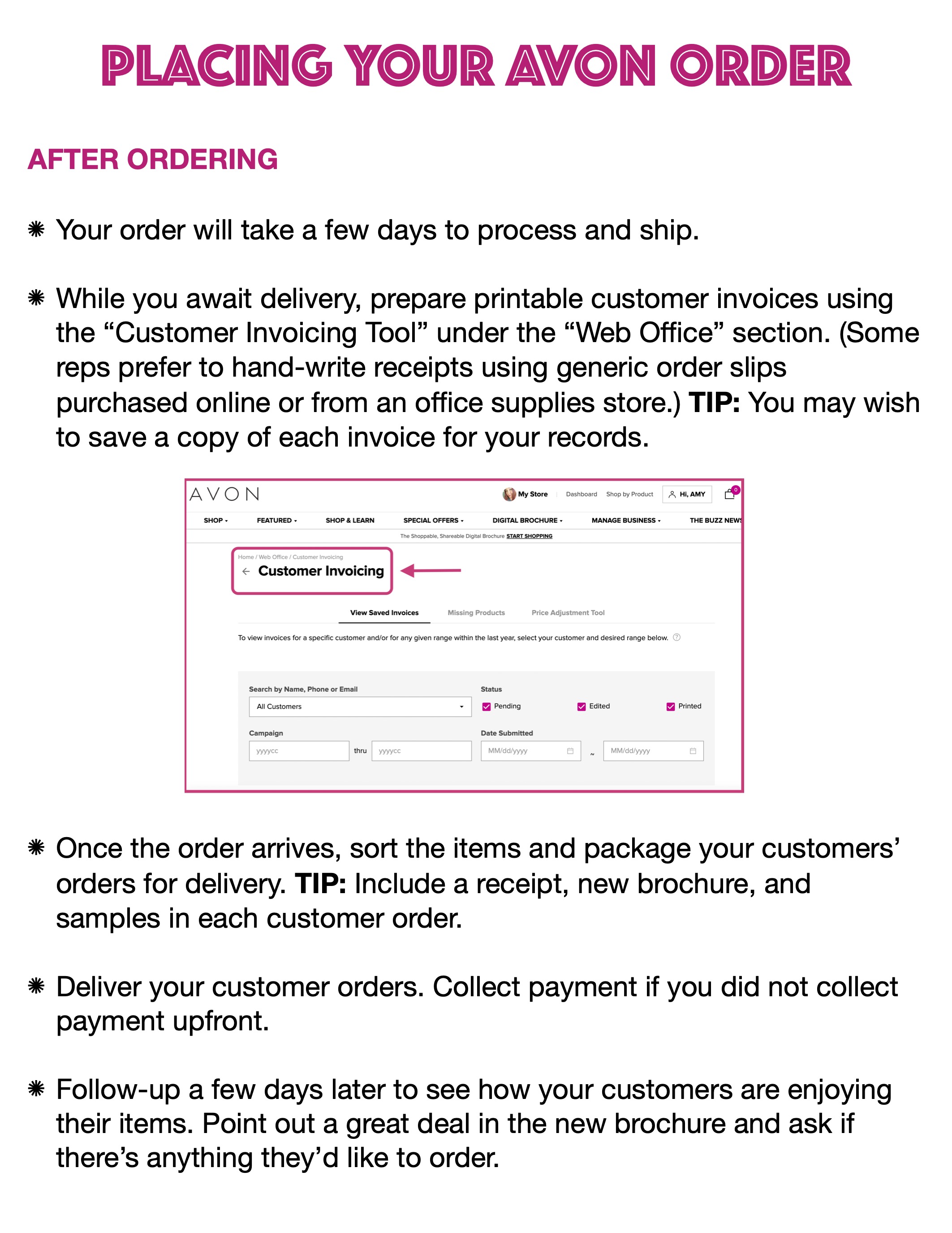 I’ve organized some helpful tips you can use before, during, and after placing your avon.com order…