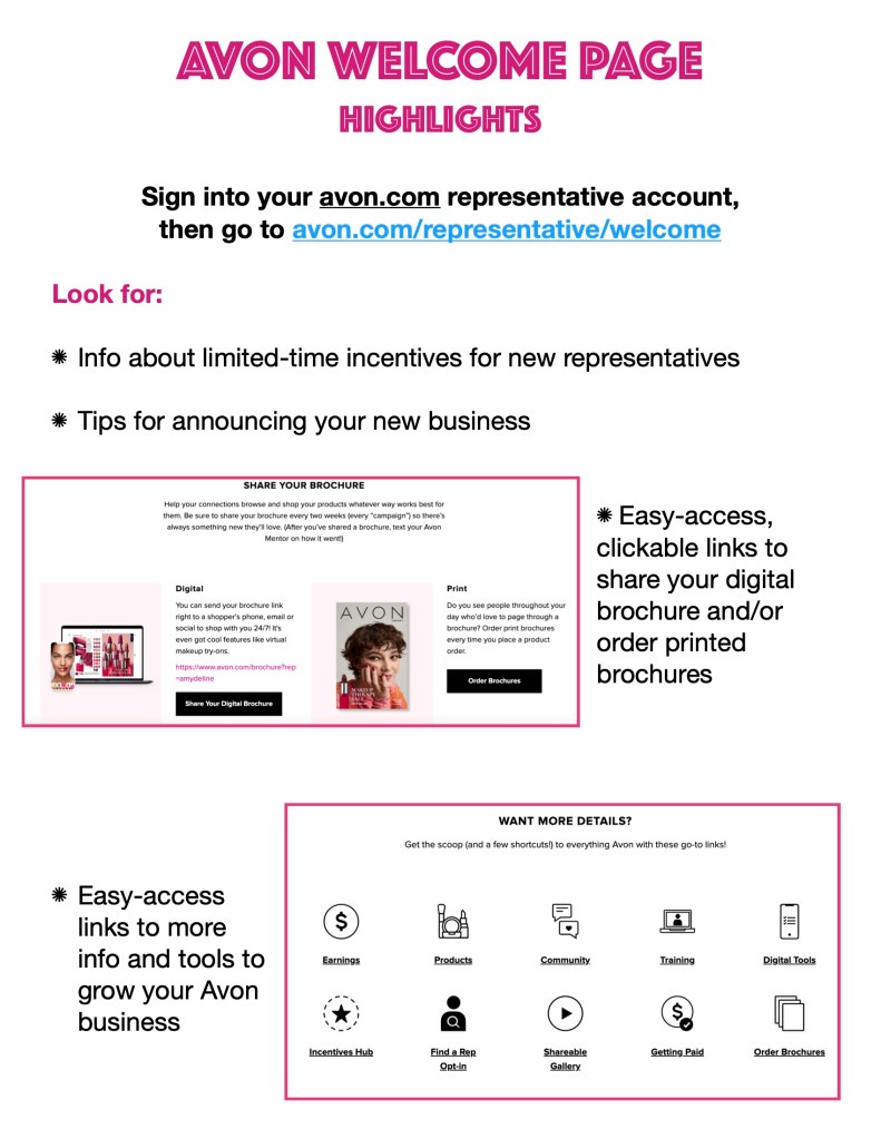 - ⭐ Once you’re signed in, go to avon.com/representative/welcome to access the new representative welcome page. You’ll find some very useful tips, info, and resources on this page.