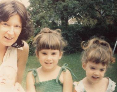 In the memory, we are in a neighbor’s backyard. Two men and two women are sitting at a picnic table. I am in my mother’s arms, looking down at my baby sister, who is sleeping in a yellow buggy.
